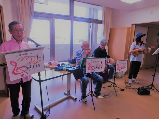 『JJガールズ+ニャー🐈』さんは4人組のバンドで、2か月に1回(偶数月)楽器を持参し演奏に来て下さいます。
