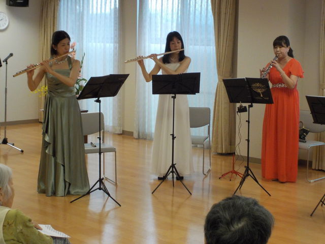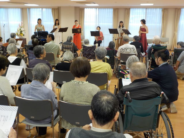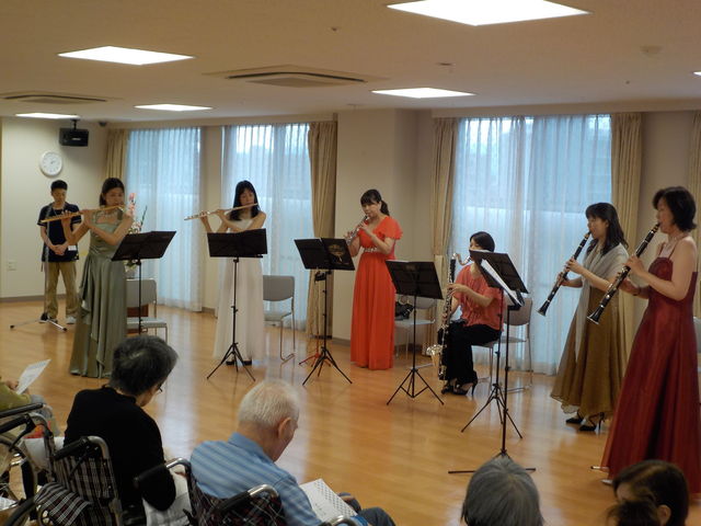 2019年07月03日 薔薇の樹苑/ R1.6.29 精華女子短期大学コミュニティオーケストラ 木管セクションの皆様が来苑 6月29日午後、精華女子短期大学コミュニティオーケストラ 木管セクションの皆様が来苑されました。「乾杯の歌」「川の流れのように」「蘇州夜曲」「花」「瀬戸の花嫁」「パリの空の下」・・・・・など、ご利用者様が昔よく聞いていた懐かしい歌を、素敵なドレスに身を包んだ6名の皆様が、木管楽器で美しいメロディを奏でて下さいました。ご利用者、ご家族、またスタッフも、生で聞く澄み切った音色に時を忘れて、楽しませていただきました。本当にありがとうございました。 「薔薇の樹苑」カテゴリの最新記事 < 前の記事次の記事 > コメント コメントフォーム 名前 コメント 評価する リセット リセット 顔 星 投稿する 情報を記憶