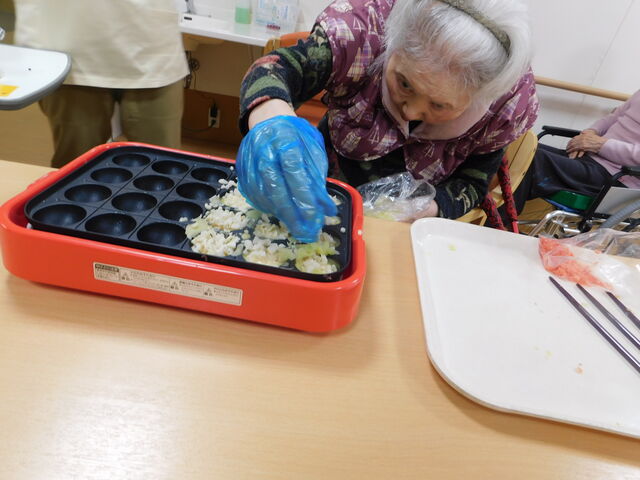 2021年05月28日 ムーンシャドウ / 4階 タコ焼きづくり 4階では、手作りおやつとして「タコ焼き」を作りました(●´ω`●)出汁と粉を混ぜて、出来上がった生地をタコ焼き器に流していきます外側がジュージューと音がするまでは焼けるのを待ちます今度はくるっと回転させて反対側も焼いていきます本場出身の利用者様が気合を入れて上手に回転させ、まーるいタコ焼きが出来上がりました.。゚+.(・∀・)゚+.゚美味しさでニコニコ笑顔が見られました 「ムーンシャドウ」カテゴリの最新記事 < 前の記事次の記事 >