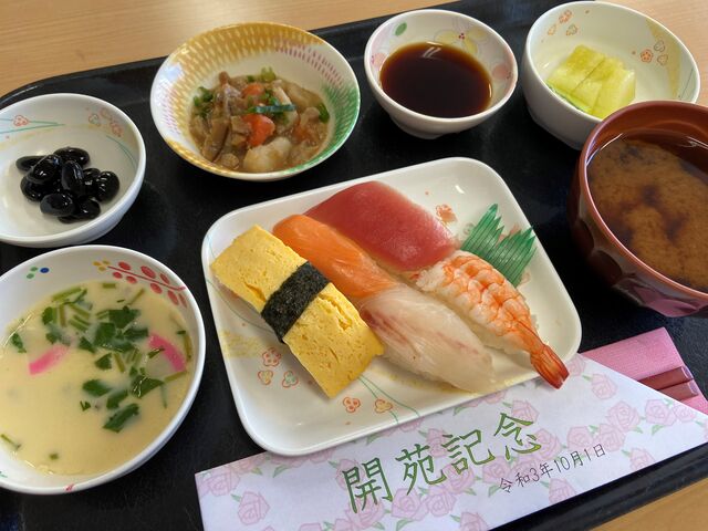 2021年10月11日 薔薇の樹苑/R3.10お楽しみ献立 薔薇の樹苑 栄養科より10月のお楽しみ献立の紹介です。10/1(金)に薔薇の樹苑の開苑記念行事食を提供しました。開苑15周年となりました。~献立~にぎり寿司、茶碗蒸し、筑前煮、黒豆、赤出汁、メロン1年に1度のにぎり寿司の提供を、皆様喜ばれていました。15時のおやつには、「祝」の文字が入った紅白饅頭を提供しました。16年目もどうぞよろしくお願い致します。薔薇の樹苑 栄養科 「薔薇の樹苑」カテゴリの最新記事 < 前の記事次の記事 >