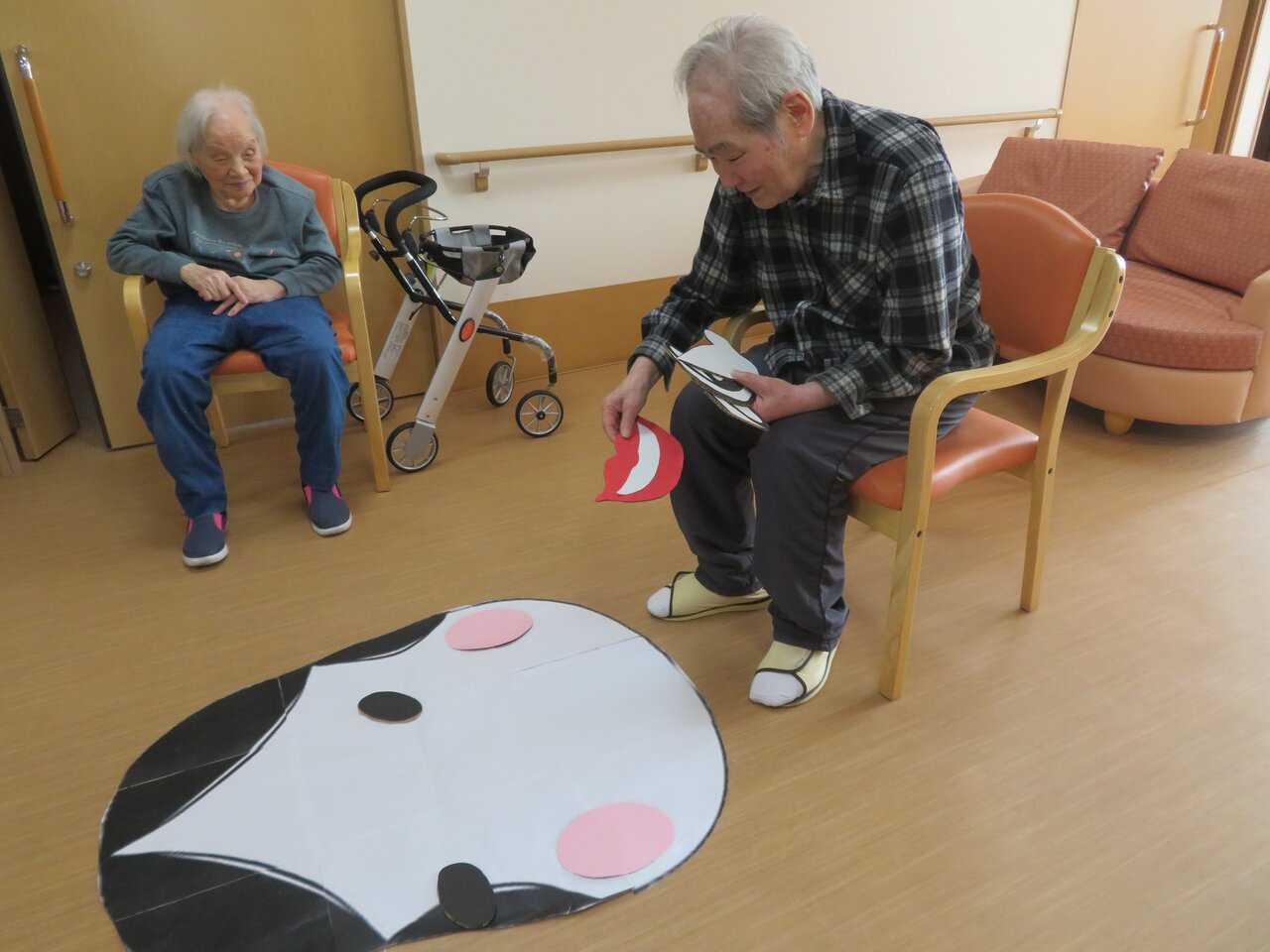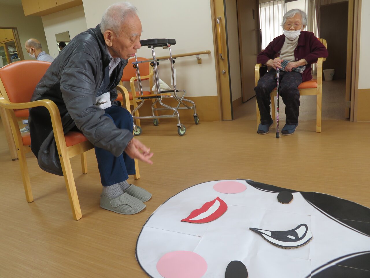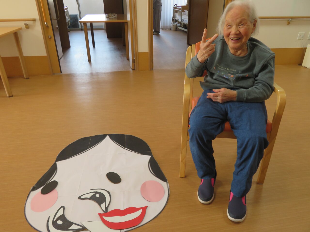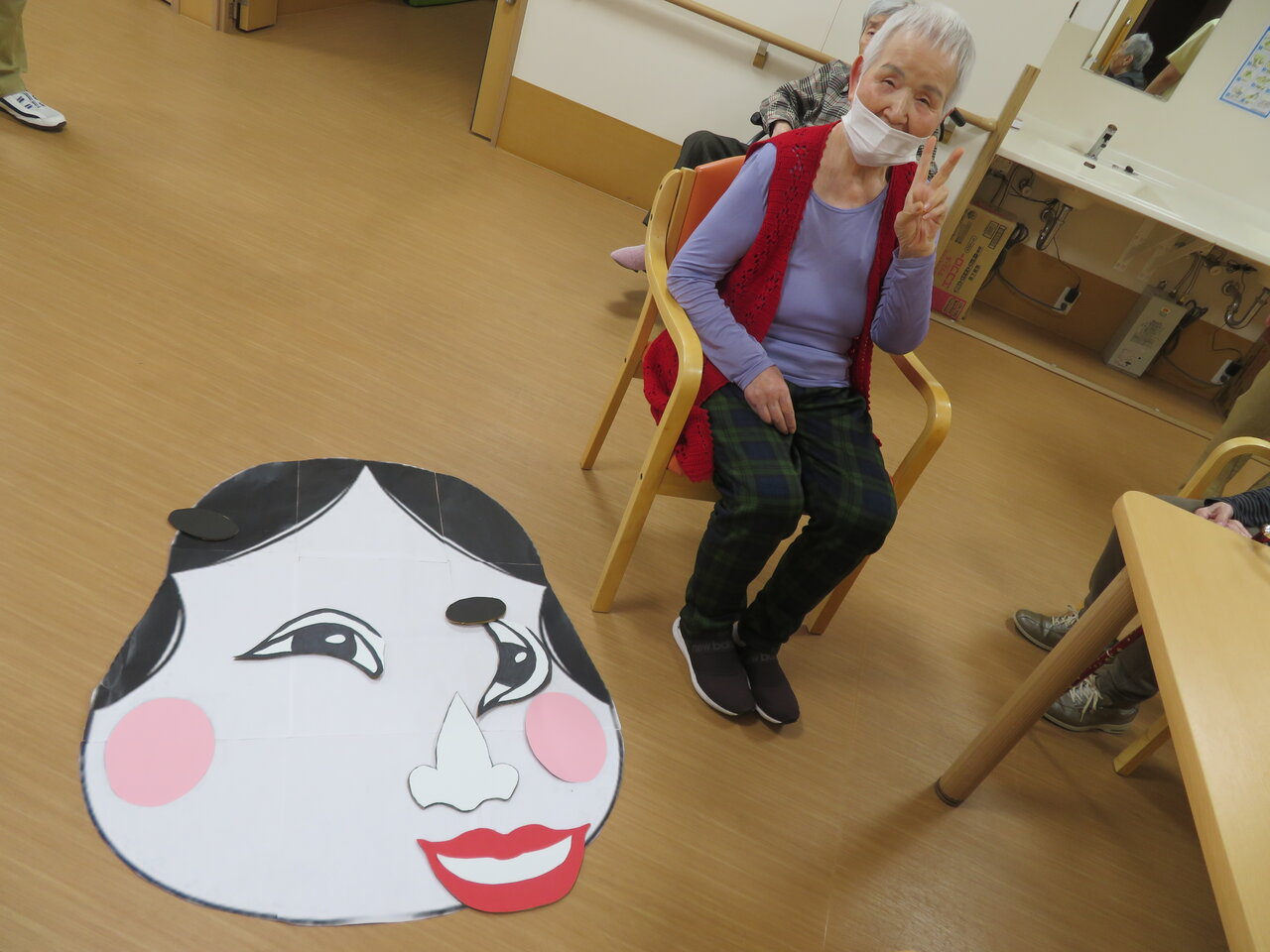2022年01月31日 ムーンシャドウ / 福笑いレク(ショートステイ) こんにちは、ムーンシャドウ ショートステイです。ショートステイの1月レクリエーションは、「福笑い」レクを行いました床に大きなおかめさんの土台を置き、顔のパーツを椅子に座ったまま投げていただきました。「もうちょっと右よ!」など、皆様声をかけ合いながら、楽しく素敵なお顔を作られておりましたその様子をご覧ください今年も一年、皆様に福が訪れますように次回もお楽しみに! カテゴリなしの他の記事 < 前の記事次の記事 >