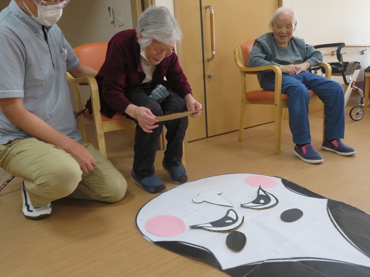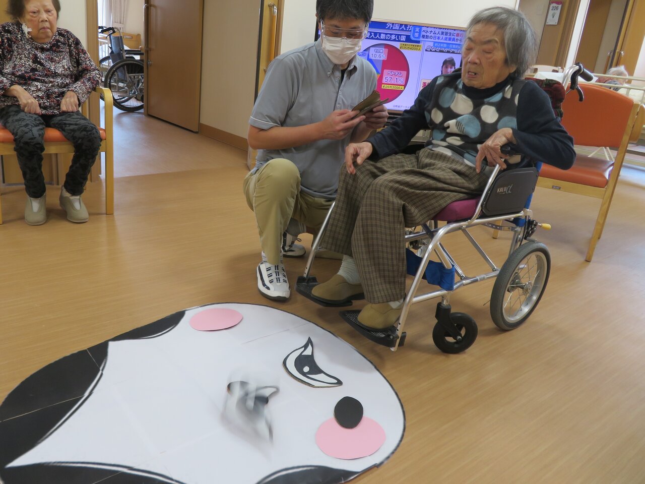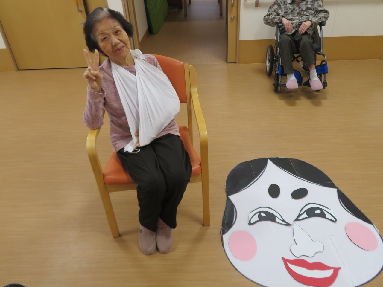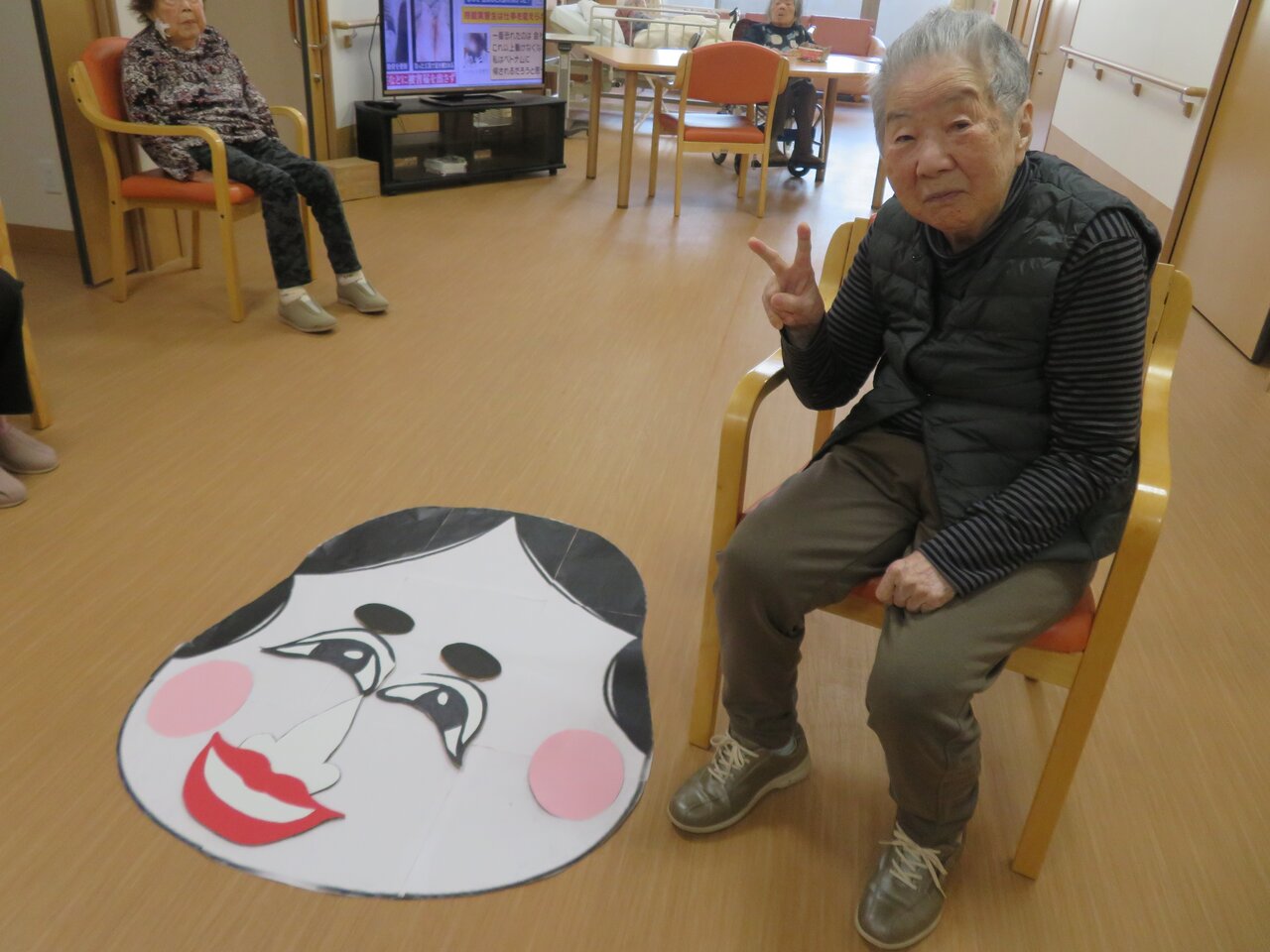 2022年01月31日 ムーンシャドウ / 福笑いレク(ショートステイ) こんにちは、ムーンシャドウ ショートステイです。ショートステイの1月レクリエーションは、「福笑い」レクを行いました床に大きなおかめさんの土台を置き、顔のパーツを椅子に座ったまま投げていただきました。「もうちょっと右よ!」など、皆様声をかけ合いながら、楽しく素敵なお顔を作られておりましたその様子をご覧ください今年も一年、皆様に福が訪れますように次回もお楽しみに! カテゴリなしの他の記事 < 前の記事次の記事 >
