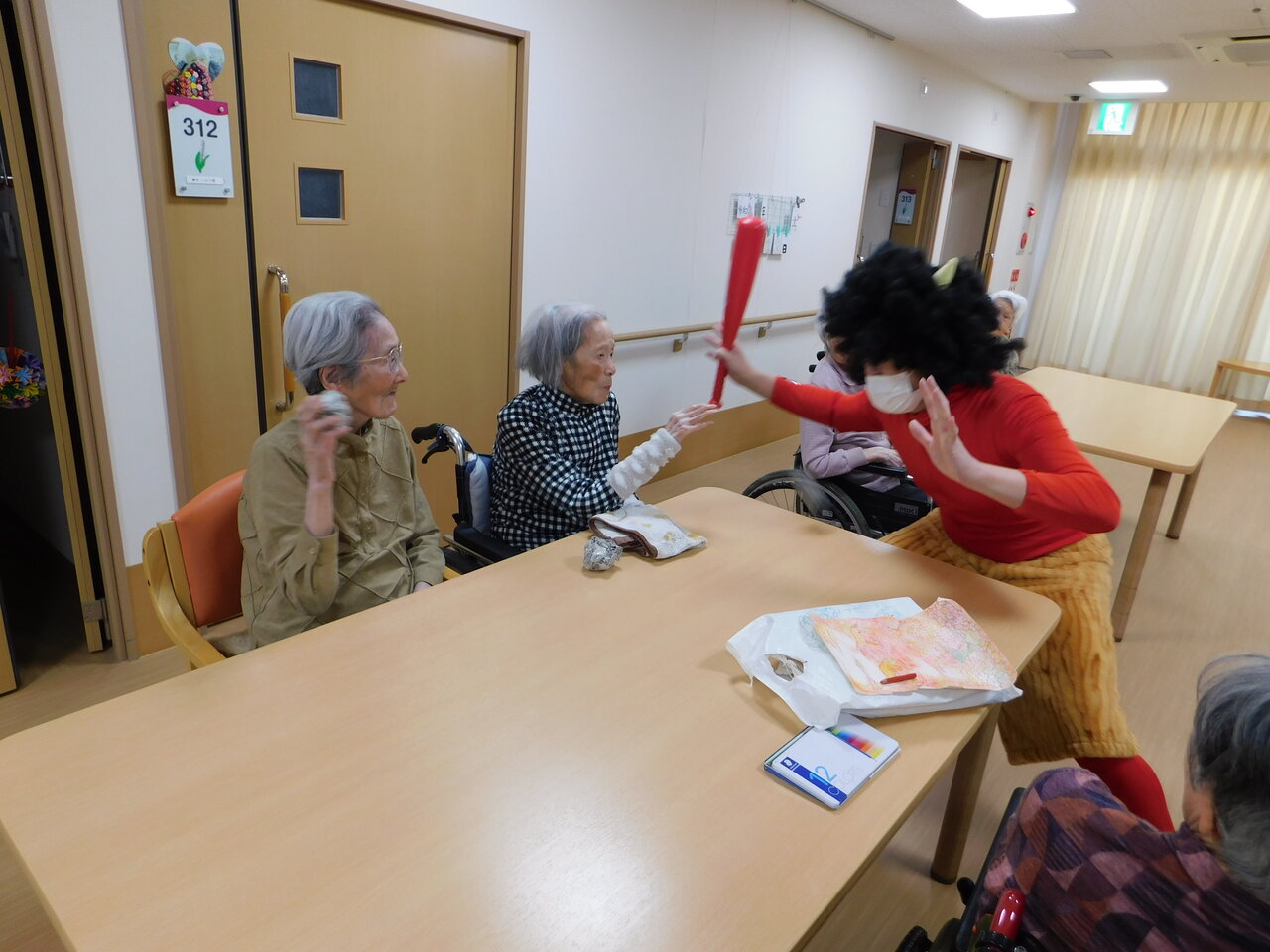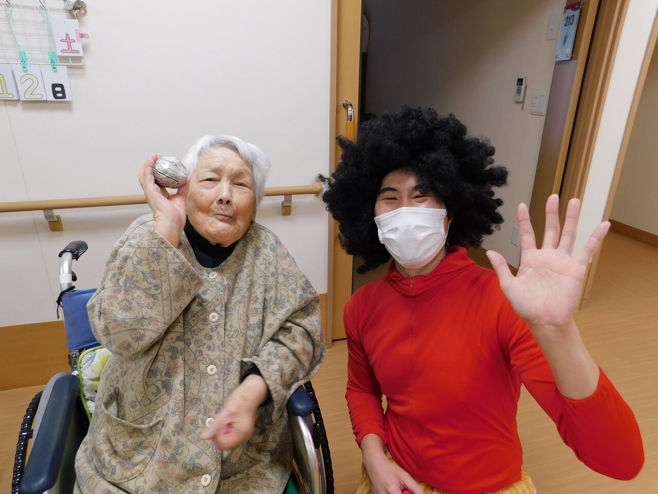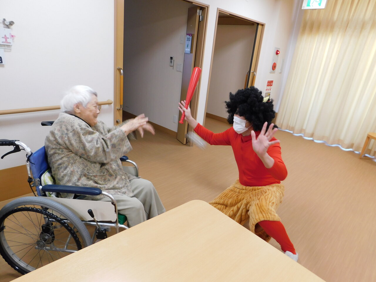2022年03月19日 ムーンシャドウ/節分レクリエーション(3階南) こんにちは、ムーンシャドウの3階南です。 3階南では2月のレクリエーションとして、節分にちなんだゲームを実施しました。 職員が鬼の格好に扮し、フロアを回ります。入所者様には「鬼は外、福は内」と言いながら、豆に見立てたボールを鬼に向かって投げて頂きました。普段はゆっくり過ごされている入所者様も鬼には容赦なくボールを投げつけます。(笑)今年もまだ始まったばかり、福の神様に沢山来て頂いて、縁起の良い年になると良いですね。(^▽^)/ カテゴリなしの他の記事 < 前の記事次の記事 >