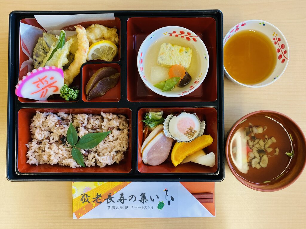 2023年09月19日 薔薇の樹苑/R5.9月お楽しみ献立 薔薇の樹苑 栄養科より9月のお楽しみ献立の紹介です。9月16日昼食にお楽しみ献立(敬老の日のお祝い膳)を提供しました。~献立~赤飯天ぷら盛り合わせぎせい豆腐のあんかけ紅茶鴨スモークのサラダ奈良漬寿蒲鉾すまし汁季節の果物和菓子15時のおやつにはケーキまたはプリンを提供しました。今後も安全で美味しいお食事を提供できるよう、努めてまいります。薔薇の樹苑 栄養科 「薔薇の樹苑」カテゴリの最新記事 < 前の記事次の記事 >