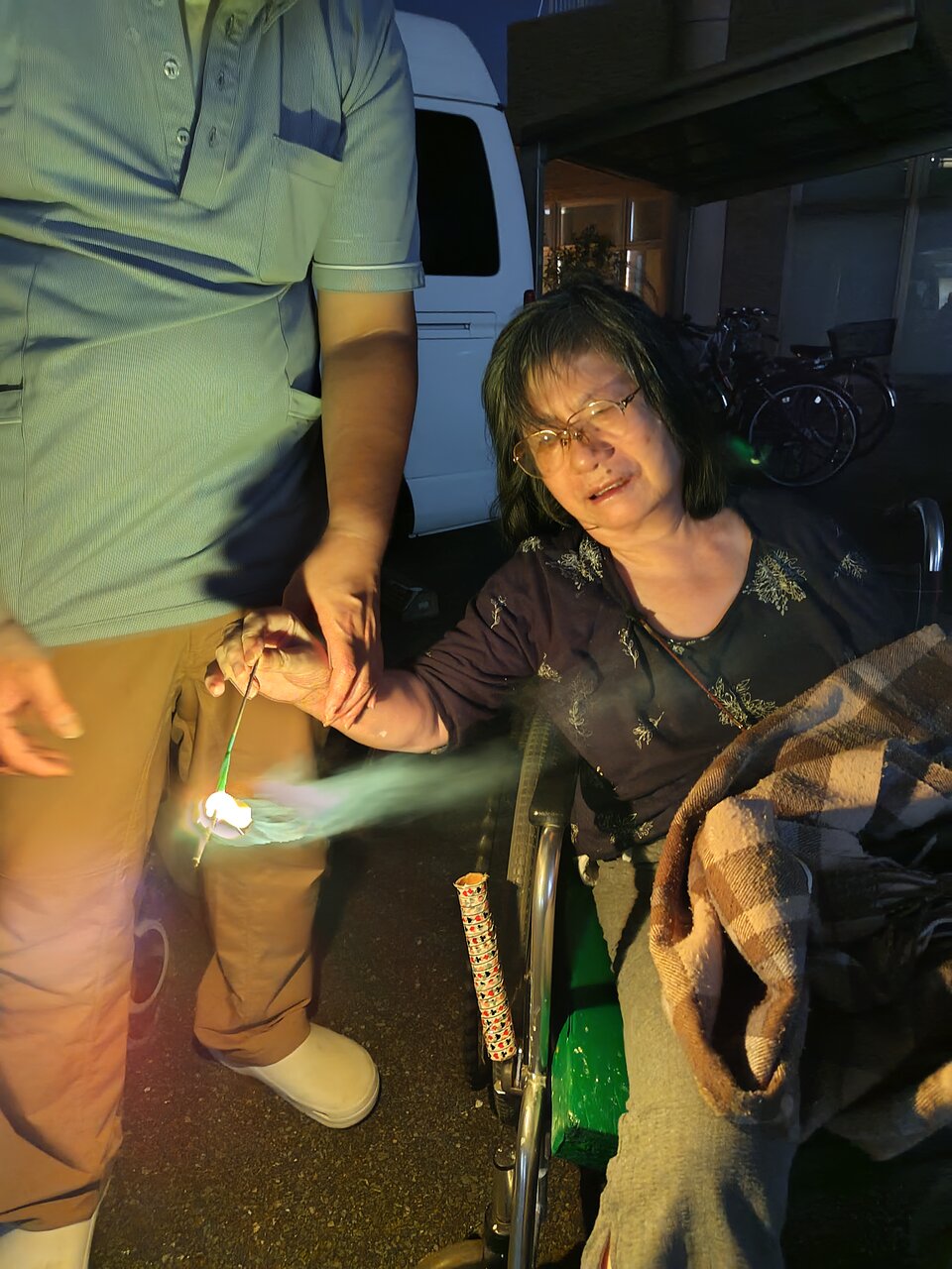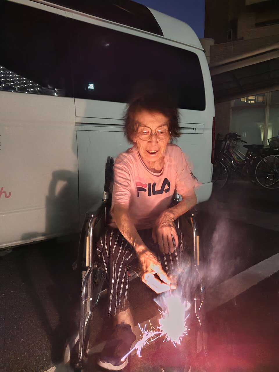 ご利用者の方々に少しでも夏を感じていただこうと、花火をしました。