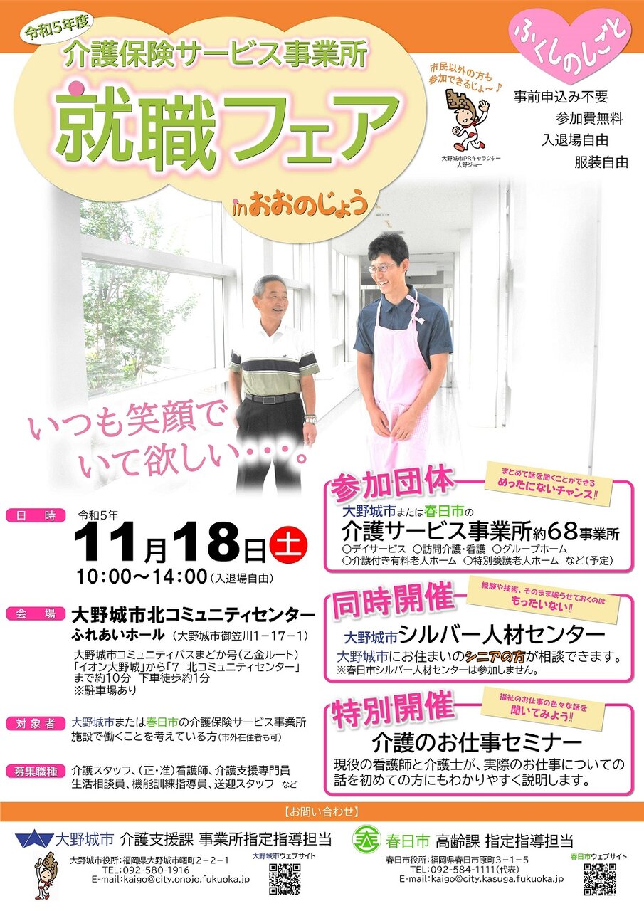 【参加費】無料 (大野城市・春日市外在住の方も参加可能です。)