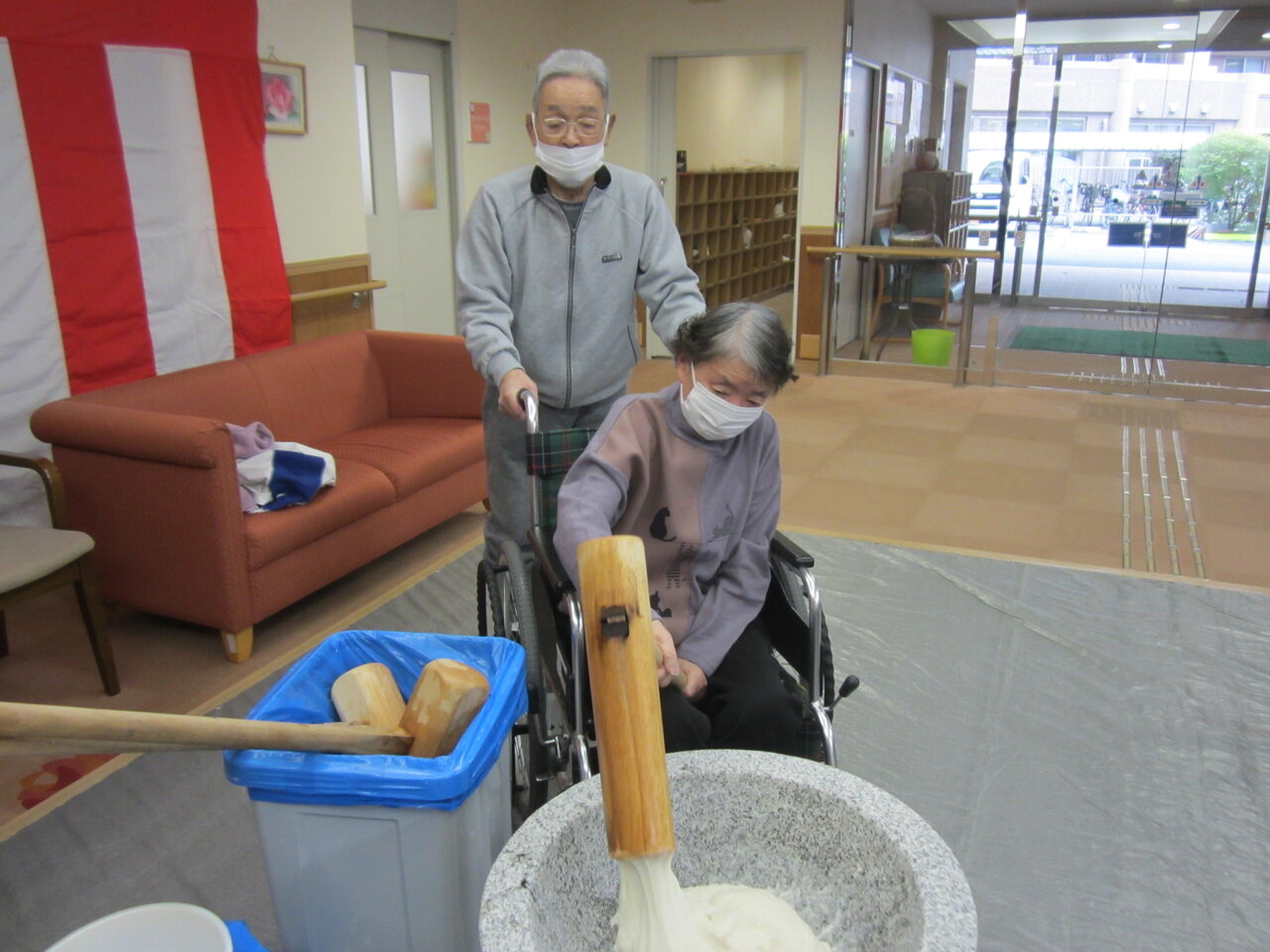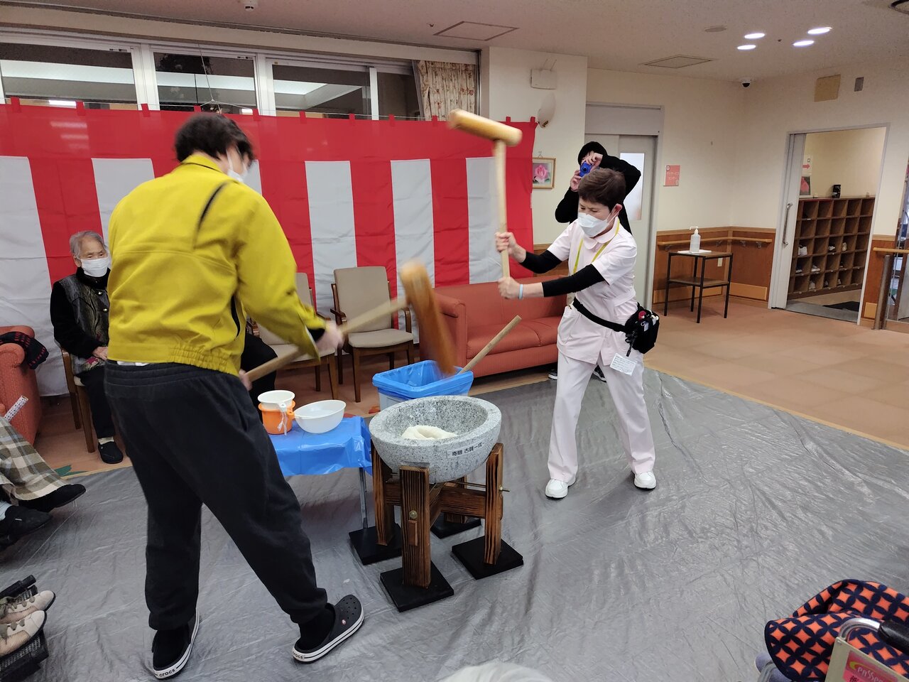 この記事を書いているのは12月26日。今日は施設全体で餅つきをしました。