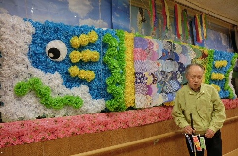 今回は、デイサービスのホール内に現れた『巨大鯉のぼり』のお話です🎶