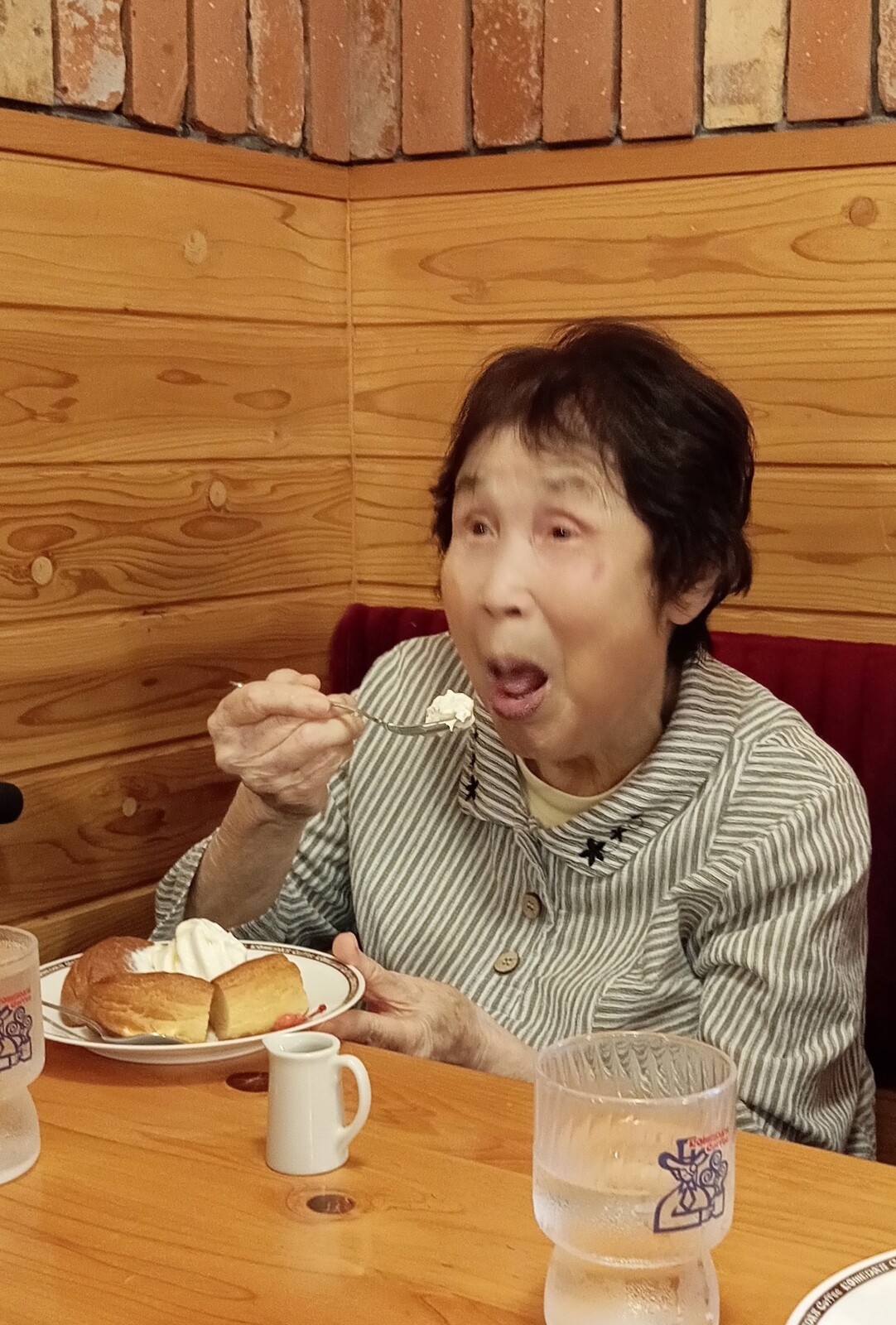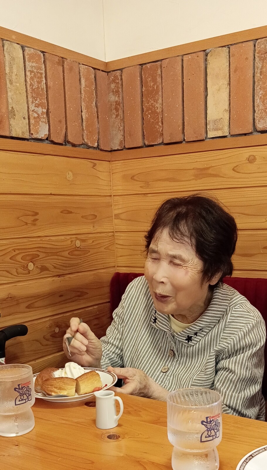 顔は写さないで💦っと言われたこちらのご利用者さんはコーヒーゼリーのパフェを美味しそうに召し上がられてました🥄😋💕