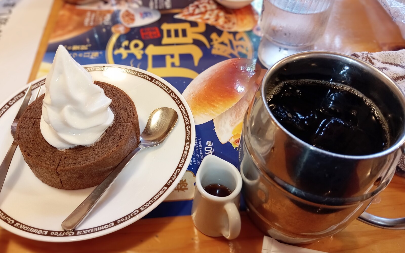 コメダ珈琲で有名な『シロノアール』のケーキセットを注文されたこちらのご利用者さん、ケーキを一口パクリとして・・・・