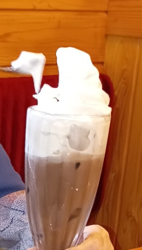 「見て〜ココア頼んだんだけど、こんなにアイスが乗ってるのよ🍦✨美味しそう💞」っと満面の笑みでココアを堪能されました😄