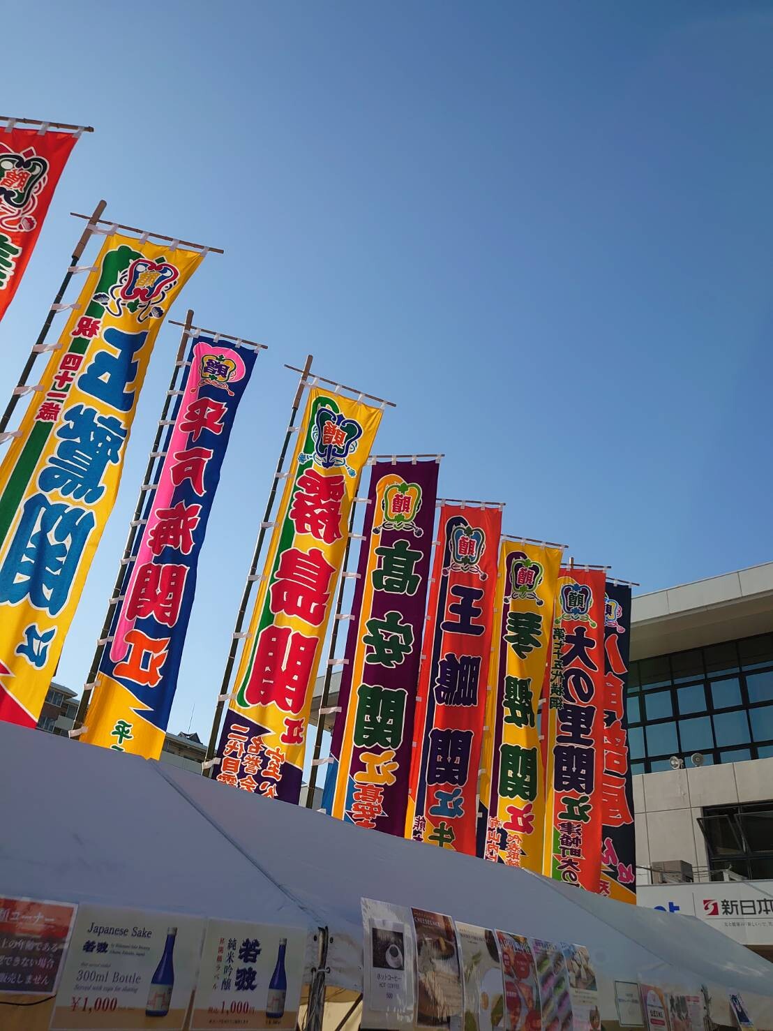 帰りには、福岡国際センターの前を通りました。ちょうど九州場所ののぼりがたっていたり、ちょんまげの人たちがうろうろしていたり。福岡の冬の雰囲気を楽しみました。